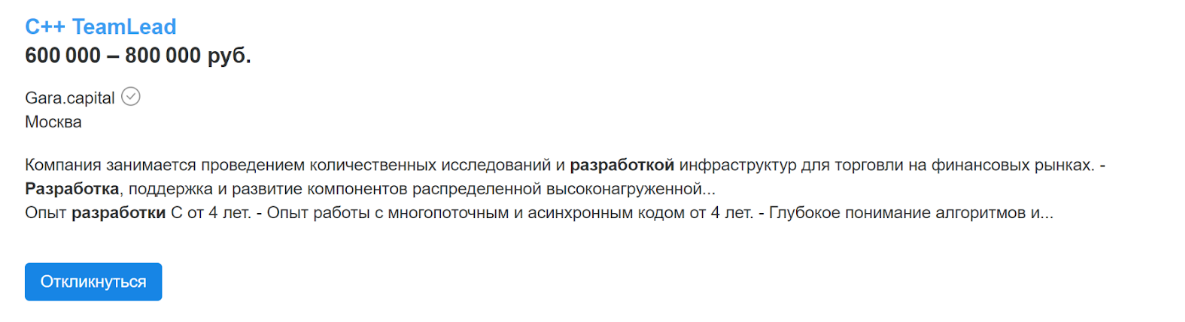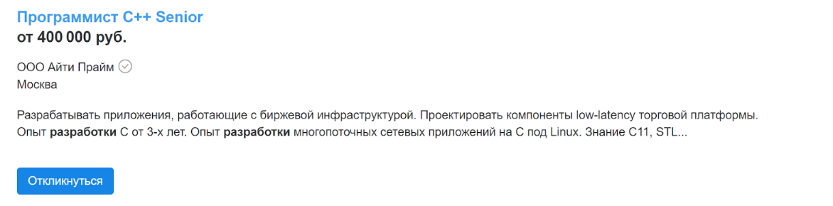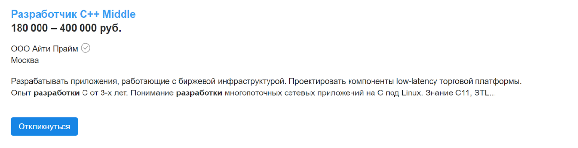 Сколько зарабатывает С++ разработчик?