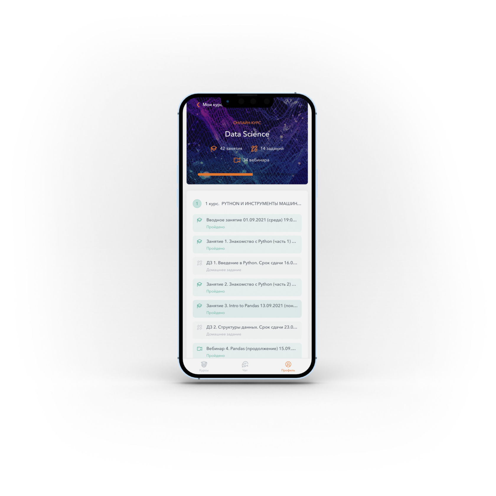 Процесс обучения одинаково удобен и через браузер на компьютере, и через мобильное приложение